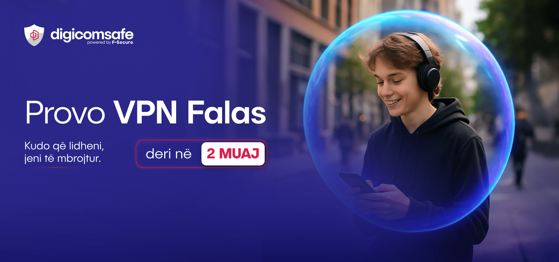 Përfito deri në 2 muaj falas dhe mbro deri në 5 pajisje (smartphone, tablet ose PC) me aktivizim të menjëhershëm përmes aplikacionit Digicom UP.