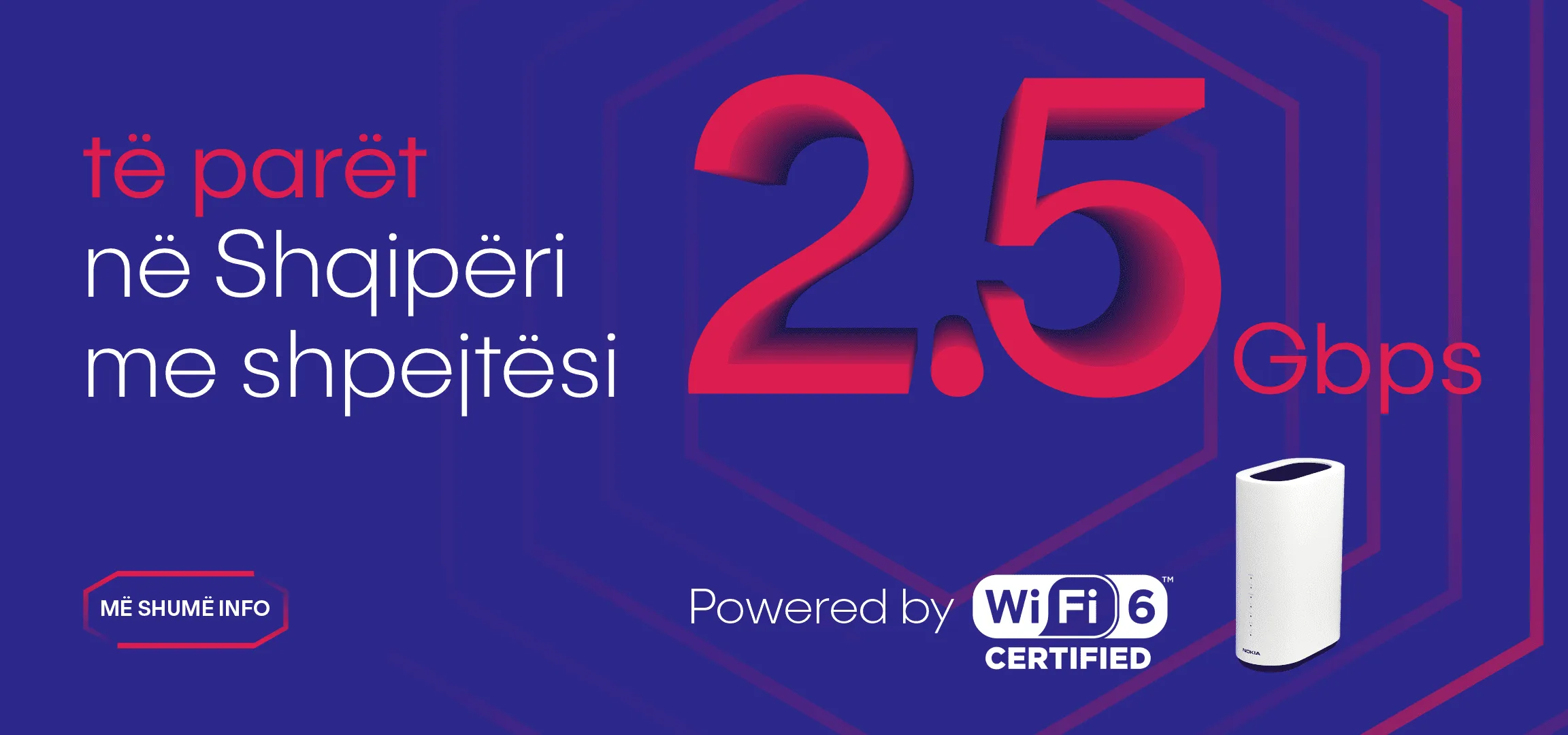 Wi-Fi 6 ofrohet nëpërmjet pajisjes XGSPON (10 Gigabit symmetrical passive optical network) e cila ofrohet në bashkëpunim me markën ndërkombëtare Nokia (Nokia XS-2626G-B).