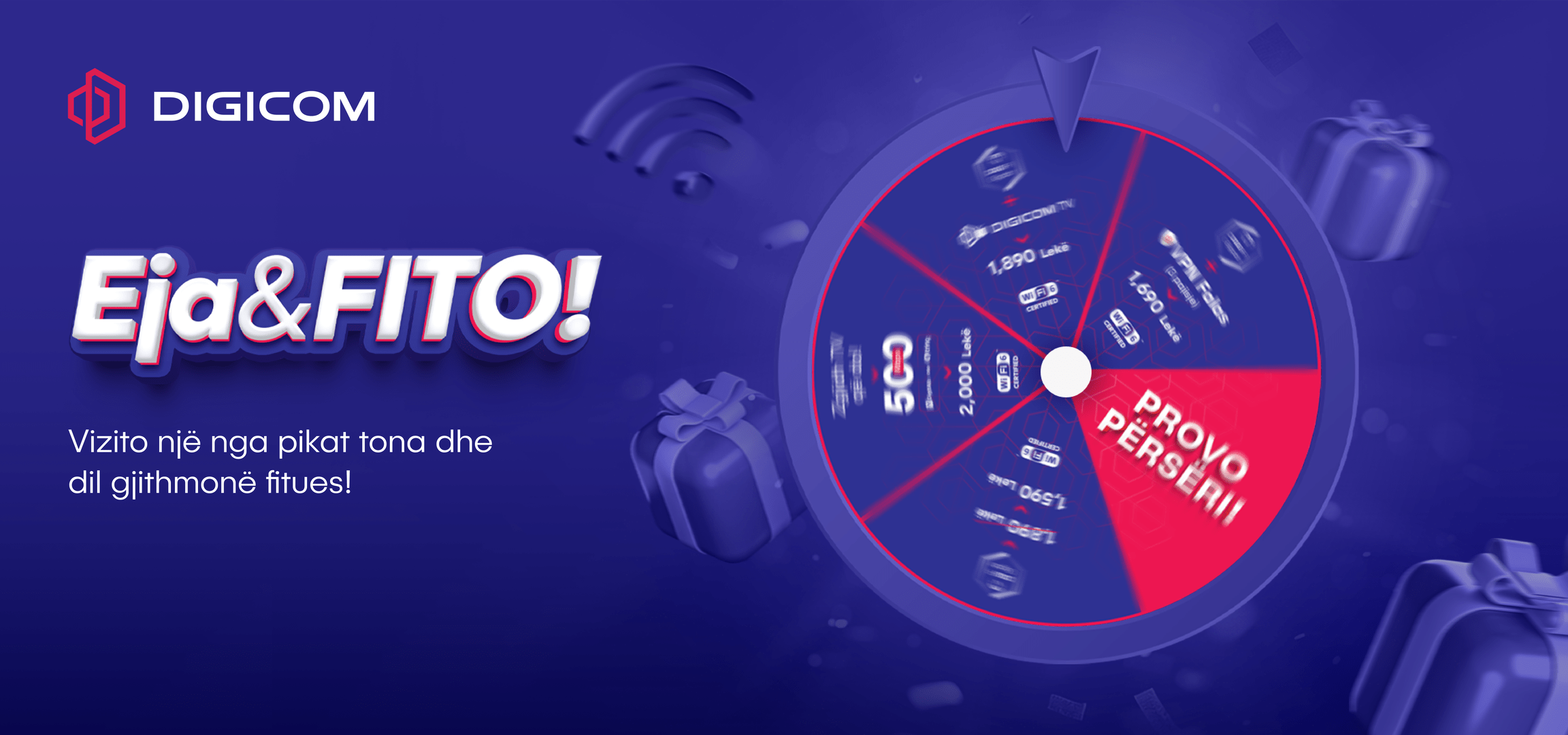 Ky promocion ju mundëson të merrni më shumë nga shërbimet dhe produktet Digicom, duke rrotulluar rrotën e fatit për të përfituar dhurata fantastike.