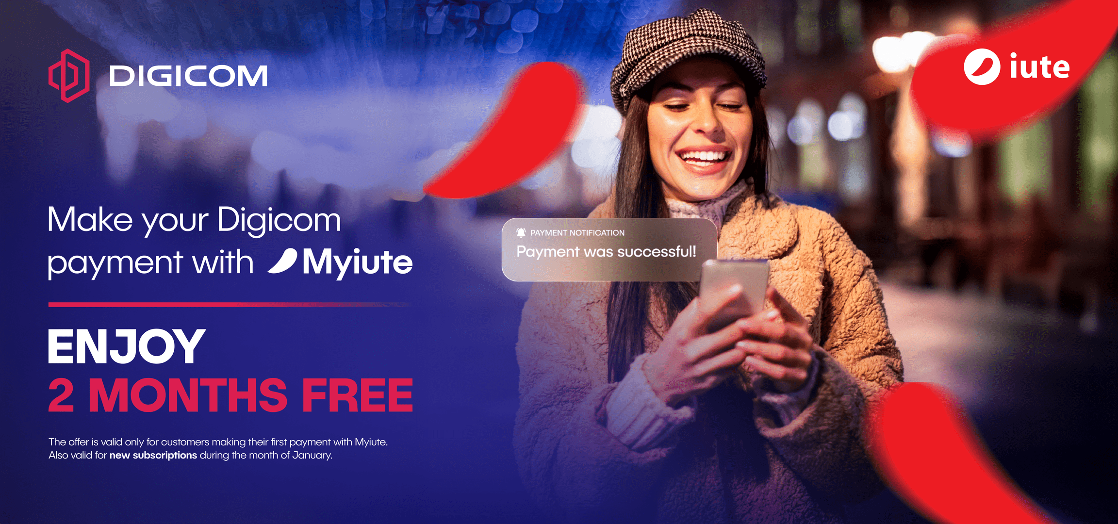 This offer is dedicated to all Digicom customers who choose to pay their bill for the first time through the Myiute app, benefiting from a simple, secure, and digital payment method. At the same time, the offer is also valid for all new subscriptions activated during the month of January, giving new customers the opportunity to benefit from this promotion from their very first month of service.
